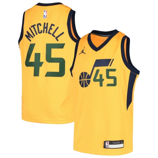 Youth Utah Jazz #45 Donovan Mitchell Jordan Brand Gold 2020-21 Swingman Player Jersey