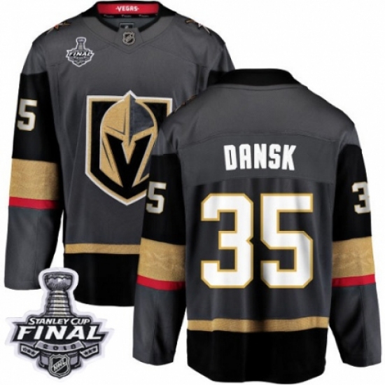 Men's Vegas Golden Knights #35 Oscar Dansk Authentic Black Home Fanatics Branded Breakaway 2018 Stanley Cup Final NHL Jersey