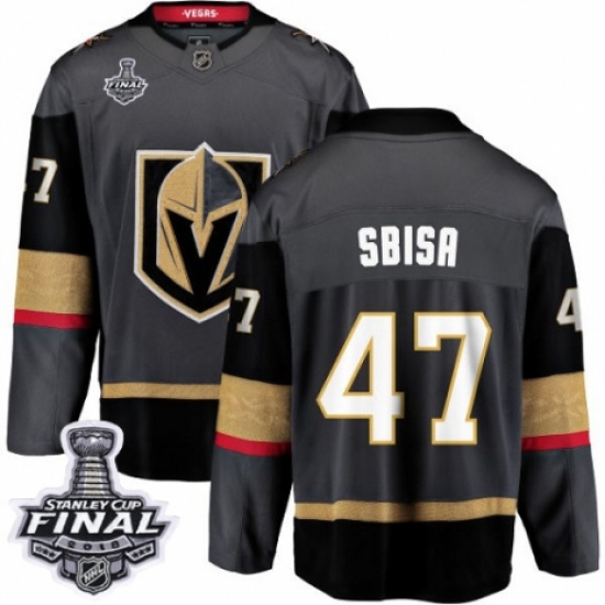 >Youth Vegas Golden Knights #47 Luca Sbisa Authentic Black Home Fanatics Branded Breakaway 2018 Stanley Cup Final NHL Jersey