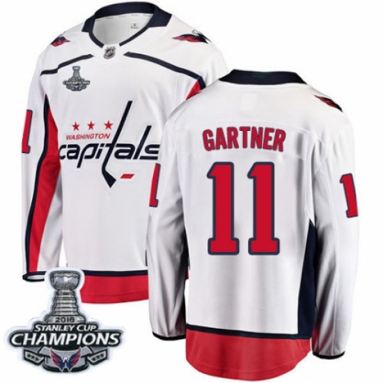 Women's Adidas Washington Capitals #11 Mike Gartner Authentic White Away 2018 Stanley Cup Final Champions NHL Jersey