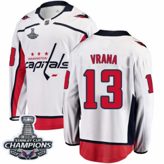 Youth Washington Capitals #13 Jakub Vrana Fanatics Branded White Away Breakaway 2018 Stanley Cup Final Champions NHL Jersey