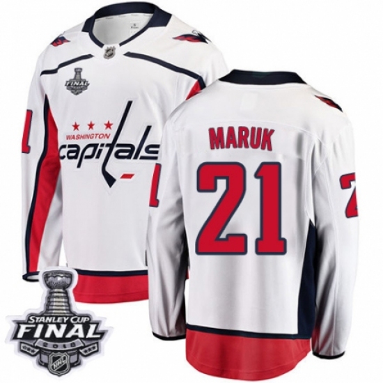 >Youth Washington Capitals #21 Dennis Maruk Fanatics Branded White Away Breakaway 2018 Stanley Cup Final NHL Jersey