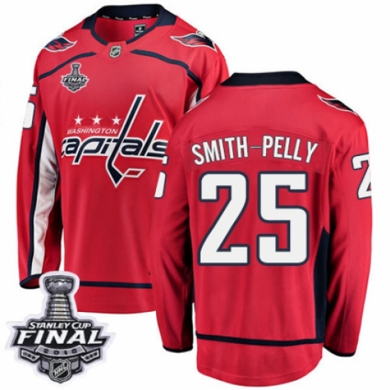Men's Adidas Washington Capitals #25 Devante Smith-Pelly Authentic Red Home 2018 Stanley Cup Final Champions NHL Jersey