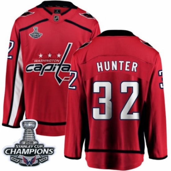 >Youth Washington Capitals #32 Dale Hunter Fanatics Branded Red Home Breakaway 2018 Stanley Cup Final Champions NHL Jersey