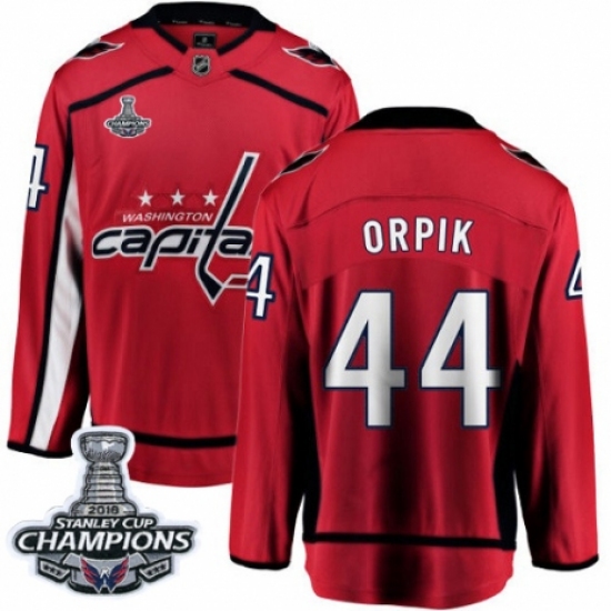 >Youth Washington Capitals #44 Brooks Orpik Fanatics Branded Red Home Breakaway 2018 Stanley Cup Final Champions NHL Jersey