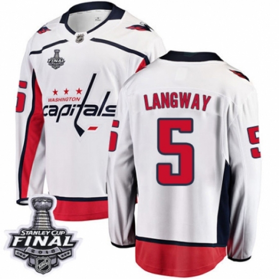 Youth Washington Capitals #5 Rod Langway Fanatics Branded White Away Breakaway 2018 Stanley Cup Final NHL Jersey