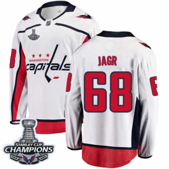 Youth Washington Capitals #68 Jaromir Jagr Fanatics Branded White Away Breakaway 2018 Stanley Cup Final Champions NHL Jersey