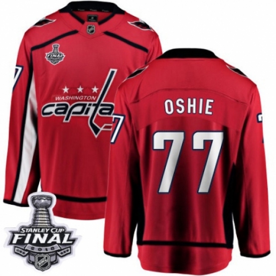 >Youth Washington Capitals #77 T.J. Oshie Fanatics Branded Red Home Breakaway 2018 Stanley Cup Final NHL Jersey