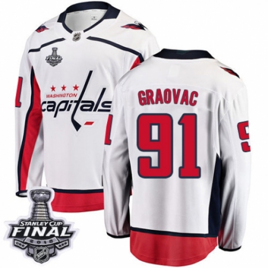Youth Washington Capitals #91 Tyler Graovac Fanatics Branded White Away Breakaway 2018 Stanley Cup Final NHL Jersey
