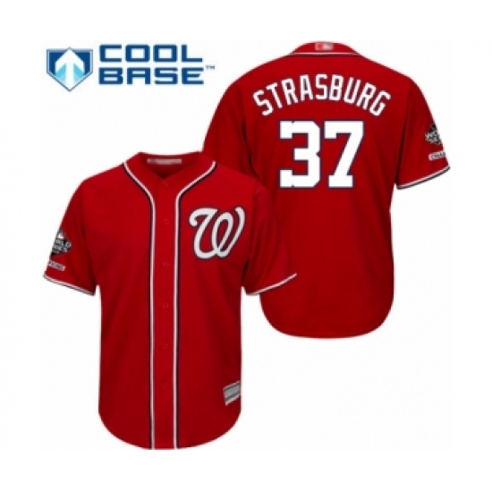 >Youth Washington Nationals #37 Stephen Strasburg Authentic Red Alternate 1 Cool Base 2019 World Series Champions Baseball Jersey